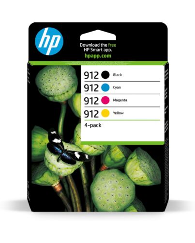 HP 912 4-pack Black/Cyan/Magenta/Yellow Original Ink Cartridges, Standard Yield, Black, Cyan, Magenta, Yellow, Pigment-based ink, Pigment-based ink, 6.5 ml, 4 ml