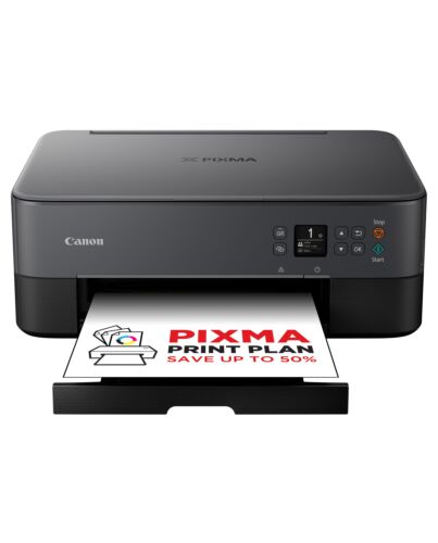 This chic and sleek 3-In-One has a contemporary 2-tone design with an LED status bar, making it an ideal match for modern creatives. Let loose your ambitions and get designing with Easy-PhotoPrint Editor, or try paper crafts from Creative Park. Load up the rear feed with a whole host of creative media, including iron-on transfers and double-sided matte paper, to turn your ideas into reality. Take control with your smartphone thanks to snappy Wireless Products' target='_self' >wireless connectivity and print, scan and connect to your social media accounts via the Canon PRINT app – all it takes to get connected is the touch of a button thanks to Wireless Connect. For shareworthy snaps, take advantage of the FINE cartridges and ChromaLife100 ink system for vivid, long-lasting photos. This printer is compatible with the PIXMA Print Plan, a monthly subscription for inks based on pages printed.