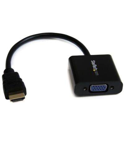 The HD2VGAE2 HDMI to VGA adapter allows you to connect an HDMI output f your laptop, ultrabook, or desktop computer onto a VGA monitor or projector, saving the cost of upgrading to an HDMI compatible display. Intended for outputting user generated content such as presentations, and work documents, the HDMI to VGA converter can also work to increase your productivity by extending your computer's desktop onto a secondary monitor, doubling available workspace.