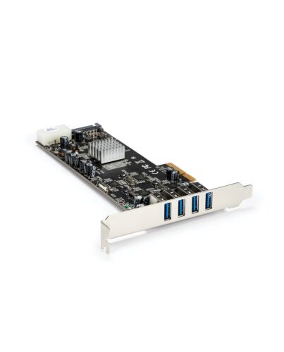 The PEXUSB3S44V 4-Port PCI Express USB 3.2 Gen 1 Card lets you add four, dedicated 5 Gbps USB 3.2 Gen 1 ports to your PCIe x4-enabled PC. This independent port architecture improves USB 3.2 Gen 1 performance by transferring data on four individual channels to your computer, giving you faster file transfers.