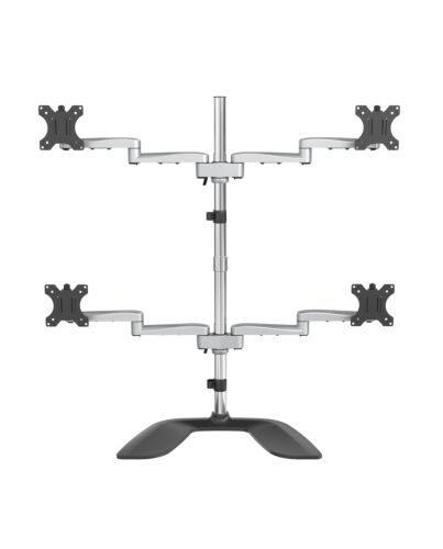 Constructed of aluminum and steel, the heavy-duty four-monitor stand lets you set up your workspace for optimum productivity. The monitor stand supports four VESA mount (75x75, 100x100) monitors up to 32" each, with a maximum weight capacity of up to 17.6 lb./8 kg per display.