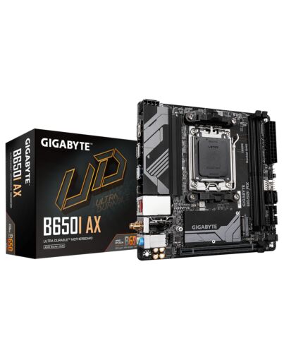 GIGABYTE B650I AX Motherboard - AMD Ryzen 9000 Series CPUs, 5+2+1 Phases VRM, up to 6400MHz DDR5 (OC), 1xPCIe 4.0 M.2, 2.5GbE LAN, WIFI 6E, USB 3.2 Gen 2