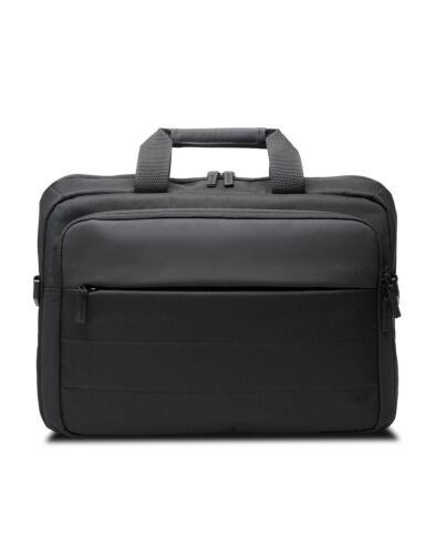 Using 23.0 x 250ml plastic bottles, the case is made f 52% post-consumer recycled (PCR) polyester. ern and travel-friendly, the carrying case accomates up to 16” laptops (including 15.6” notebooks) and includes a padded compartment. A pered front compartment and multiple pockets offer easy access to files and accessories. A padded shoulder sling strap delivers support for your neck and shoulders, together with a trolley strap for simple attachment to rolling luggage. The clamshell design simplifies security screening.