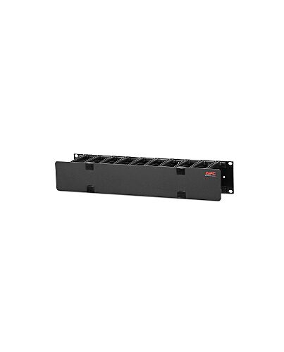 APC NetShelter Cable Management, Horizontal Cable Manager, 2U, Single Side with Cover, Black, 483 x 88 x 110 mm, Cable management panel, Black, 1.02 kg
