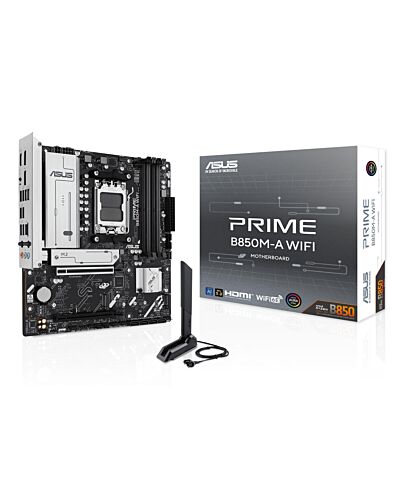 ASUS PRIME B850M-A WIFI, AMD, Socket AM5, AMD Ryzen 7000 Series, AMD Ryzen 8000 Series, AMD Ryzen 9000 Series, DDR5-SDRAM, 256 GB, DIMM