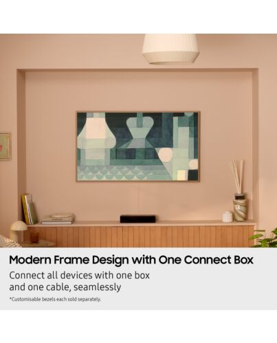 ern Frame Design & Bezel*, Pantone Validated Colour, with Quantum Dots, Matte Display, Art e, Dolby Atmos®*, One Connect Box, NQ4 AI Gen2 Processor, Art Store, Slim Fit Wall-Mount In-Box, Customisable Bezels*, Adaptive Sensors (Brightness & Motion), 4K AI Upscaling, Quantum HDR, My Photo, Art Store Streams, Object Tracking Sound*, AI Sound Pro, Matte Canvas, Gaming Hub, Smart TV powered by Tizen OS*, Samsung TV Plus, Auto HDR Remastering, AI Customisation e, Colour Booster Pro, Depth Enhancer, Dual LED, Motion Xcelerator 144Hz, Samsung Q-Symphony, Samsung Knox Security, Game Bar, SolarCell Remote, SmartThings, 10 Year Screen Burn Warranty, Height Adjustable Stand, Multiple Voice Assistants, Mobile Mirroring, Generative Wallpaper, Multi View, SmartThings Calibration, Samsung Health*, FreeSync Premium*, Auto Game e (ALLM)