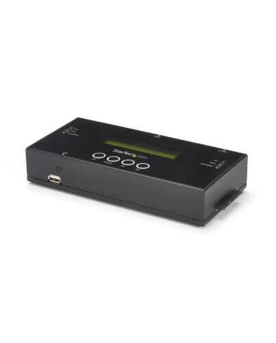 The drive duplicator and eraser provides IT professionals with an easy-to-use solution in an office or server environment. It offers convenient menu navigation buttons and a built-in LCD display that clearly identifies the duplication or erase e and task status. Since it is OS independent, no software or drivers are required.