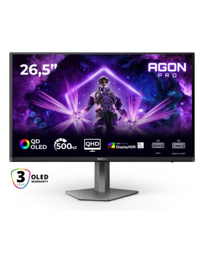 AOC AGON PRO AG276QKD2 computer monitor 67.3 cm (26.5") 2560 x 1440 pixels Quad HD QD-OLED Black, Gr