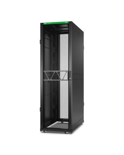 Introducing the redesigned APC NetShelter SX rack enclosure - trusted, versatile, and built for demanding IT environments. With larger load capacities and more space for equipment, it enables higher-density computing. Choose from standard, wide, extra wide, and large-depth options. The modern look is perfect for colocation and customer-facing businesses. Simplify workflows with easy access to cabling and equipment, and optimize airflow and cable management with our wide range of APC accessories. The 270° (180° bayed) opening doors keep aisles clear, while 80% door perforation improves airflow for high-powered servers. Built sustainably with all-steel construction, it lasts for years and can be used for various applications. It also boasts a 3.3% decarbonization rate and ships in sturdy, recyclable packaging.
