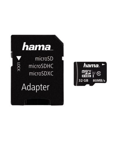 Hama microSDHC 32GB, 32 GB, MicroSDHC, Class 10, UHS-I, 80 MB/s, Black