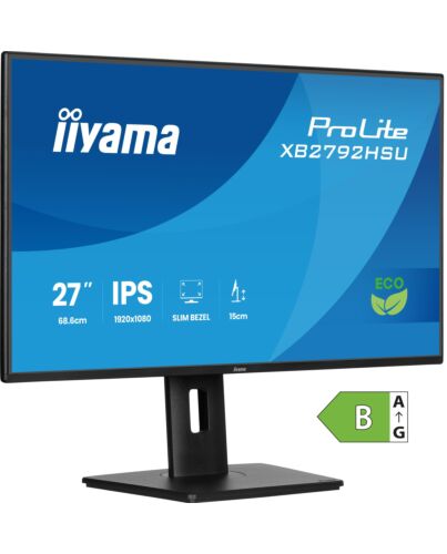The ProLite XB2792HSU is a 27” Full HD monitor for anyone who values both high performance and a more sustainable choice. Packaged without plastic and made f 85% post-consumer recycled materials, it meets TCO Certification and EPEAT® Silver standards. Its IPS panel delivers sharp detail, vibrant colours and wide viewing angles, while the 4-side slim bezel design creates a sleek, distraction‑free workspace. To take care of your eye health, it complies with the Eye Safe and Eye Comfort Certifications and the 150mm height‑adjustable ergonomic stand ensures all‑day comfort.