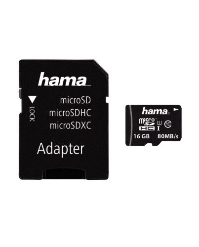 Hama microSDHC 16GB, 16 GB, MicroSDHC, Class 10, UHS-I, 80 MB/s, Black