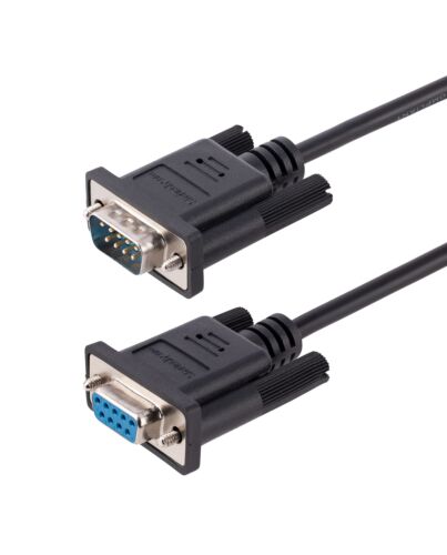- SPECIFICATIONS: 3m (9.8ft) / DB9 male to DB9 female / Color: Black / 28AWG / OD: 4.8mm / Al-Mylar cable shield & Metal shell connectors / Molded PVC strain reliefs and jacket / Note: This is a null-em cable, it is not a straight-through cable