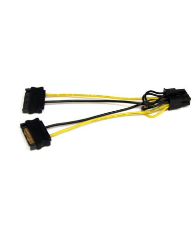 - Converts two 15-pin Serial ATA power supply connectors to one 8-pin PCIe connector