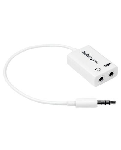 StarTech.com White headset adapter for headsets with separate headphone / microphone plugs - 3.5mm 4 position to 2x 3 position 3.5mm M/F, White, 3.5mm, 2x3.5mm, Male, Female, Polyvinyl chloride (PVC)