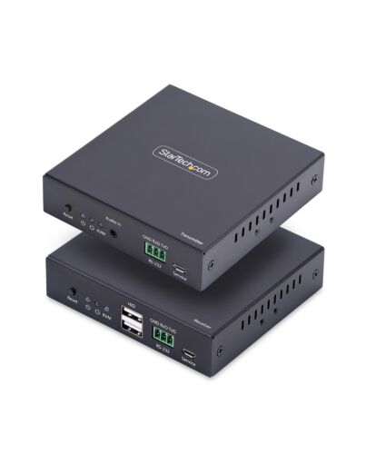 StarTech.com HDMI KVM Extender Over IP Network, 4K 60Hz, Driverless, HDMI and USB Over Ethernet/CAT6, AVoIP, Transmitter and Receiver Kit, Includes Mounting Kits, Transmitter & receiver, Wired, Cat6, 3840 x 2160 pixels, 60 Hz, Black