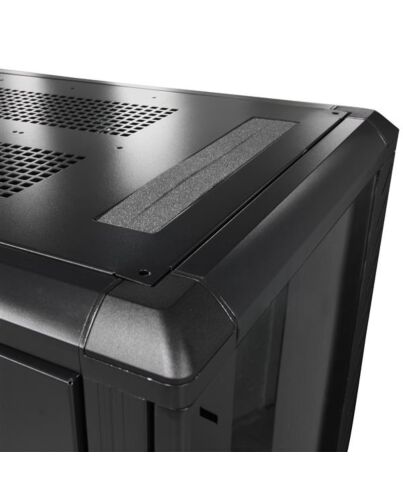 The top ceiling panel features square venting holes that are cage nut compatible, which provide mounting points that enable you to add additional equipment at the top of your rack.