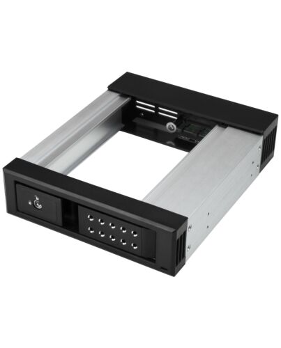 This removable hard drive hot-swap bay makes it easy to swap 3.5” SATA or SAS drives in and out of your server or desktop computer, using an available 5.25” front drive bay. It features a trayless design that saves you installation time and enables you to insert or remove drives as needed, creating a convenient solution for drive maintenance and interchangeability of data between multiple systems.