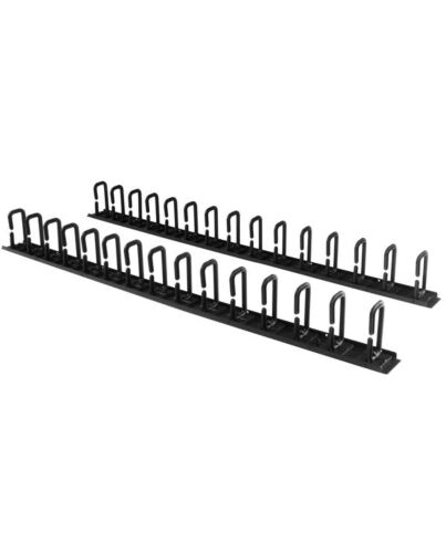 The two-piece cable manager runs vertically along the side of your rack, to neatly guide cables between equipment that’s mounted at different heights. This provides a tidy and well-organized way to run cables f devices mounted toward the bottom of your rack to other devices mounted near the top, without leaving a mess of cables hanging in between.