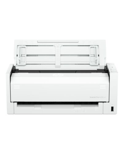 Compact. Versatile. Pro performance. Stay ahead of the demands of your business using the HP ScanJet Pro 4200 s1. through front-desk paperwork with workflow automation and scan a variety of documents f passports to invoices with exceptional clarity—all in a compact design.