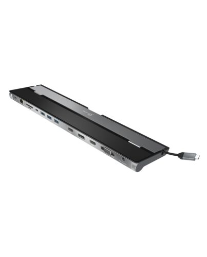 The USB-C™ Triple Display Docking Station provides extra connectivity f your computer. Extend up to three monitors through HDMI™, VGA, and DisplayPort™ or HDMI™. This docking station is designed to be used as a notebook stand, which assists with heat dissipation. With its flexible USB-C™ cord, it keeps in mind the location of the USB-C™ port on your device, ensuring an easy connection.
