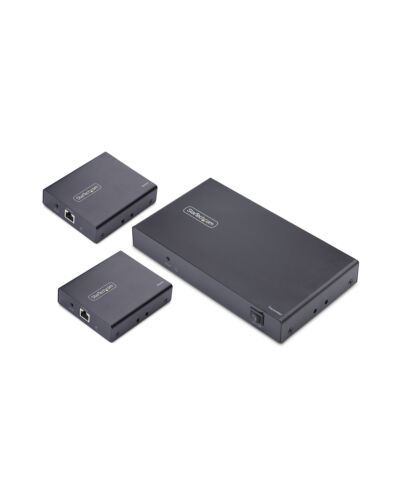 This HDMI extender and splitter delivers reliable 4K AV distribution to four displays over Ethernet cabling for professional AV installations. Enables flexible deployment using Ethernet cables for longer-range and in-wall runs. Ideal for centralized AV distribution in boardrooms, digital signage, educational facilities, and hospitality environments.