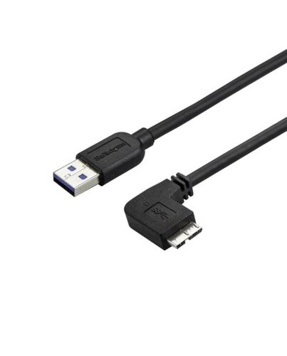 StarTech.com Slim Micro USB 3.0 Cable - M/M - Right-Angle Micro-USB - 0.5m (20in), 0.5 m, USB A, Micro-USB B, USB 3.2 Gen 1 (3.1 Gen 1), 5 Gbit/s, Black