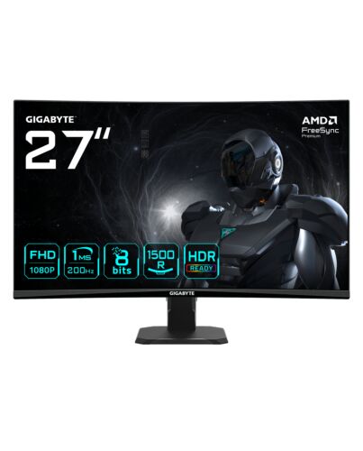 GIGABYTE GS27FCA 27" FHD Curved Gaming Monitor - 1920 x 1080, 200Hz, 1, 250 cd/m², FreeSync Premium,